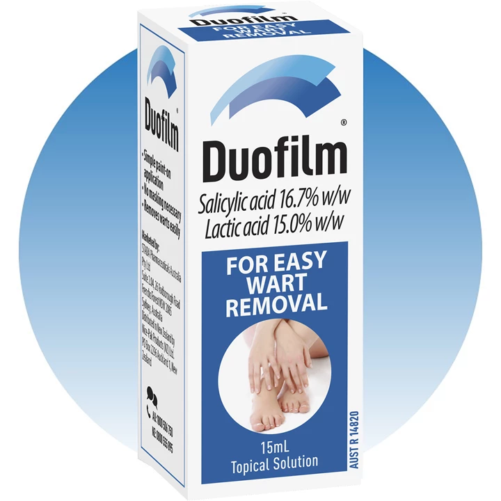 Duofilm is a medicine containing salicylic acid and lactic acid. Do not use Duofilm on the face or anogenital regions. Do not use in children under two years of age. Talk to your doctor before using this medicine in children aged 2 to 12 years. Consult your pharmacist. Read the instructions carefully. If symptoms persist, see your doctor.